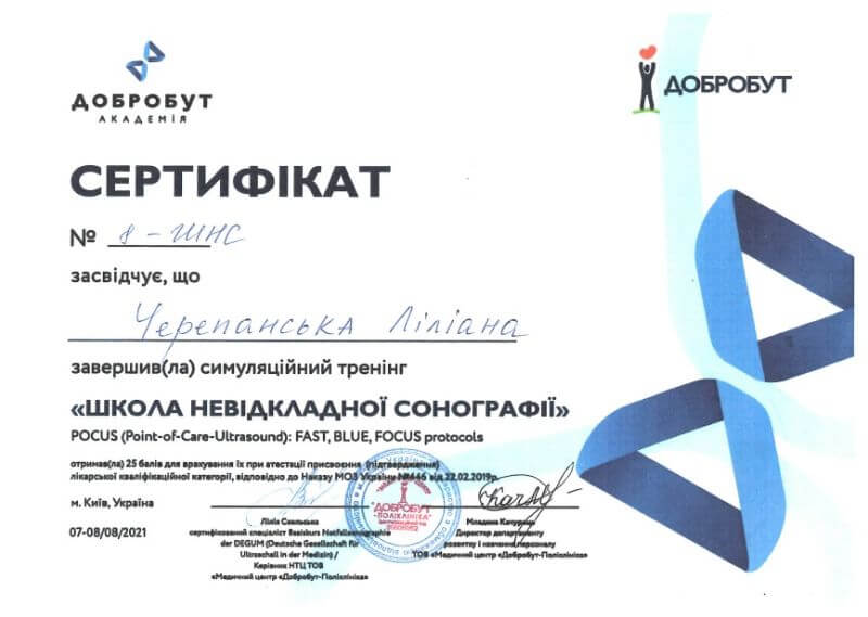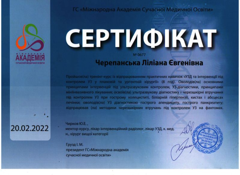 Відгук з сайту. Фахівець: Черепанська Ліліана Євгенівна. Напрями: Ультразвукова діагностика (УЗД), УЗД черевної порожнини. Філія на Печерську
