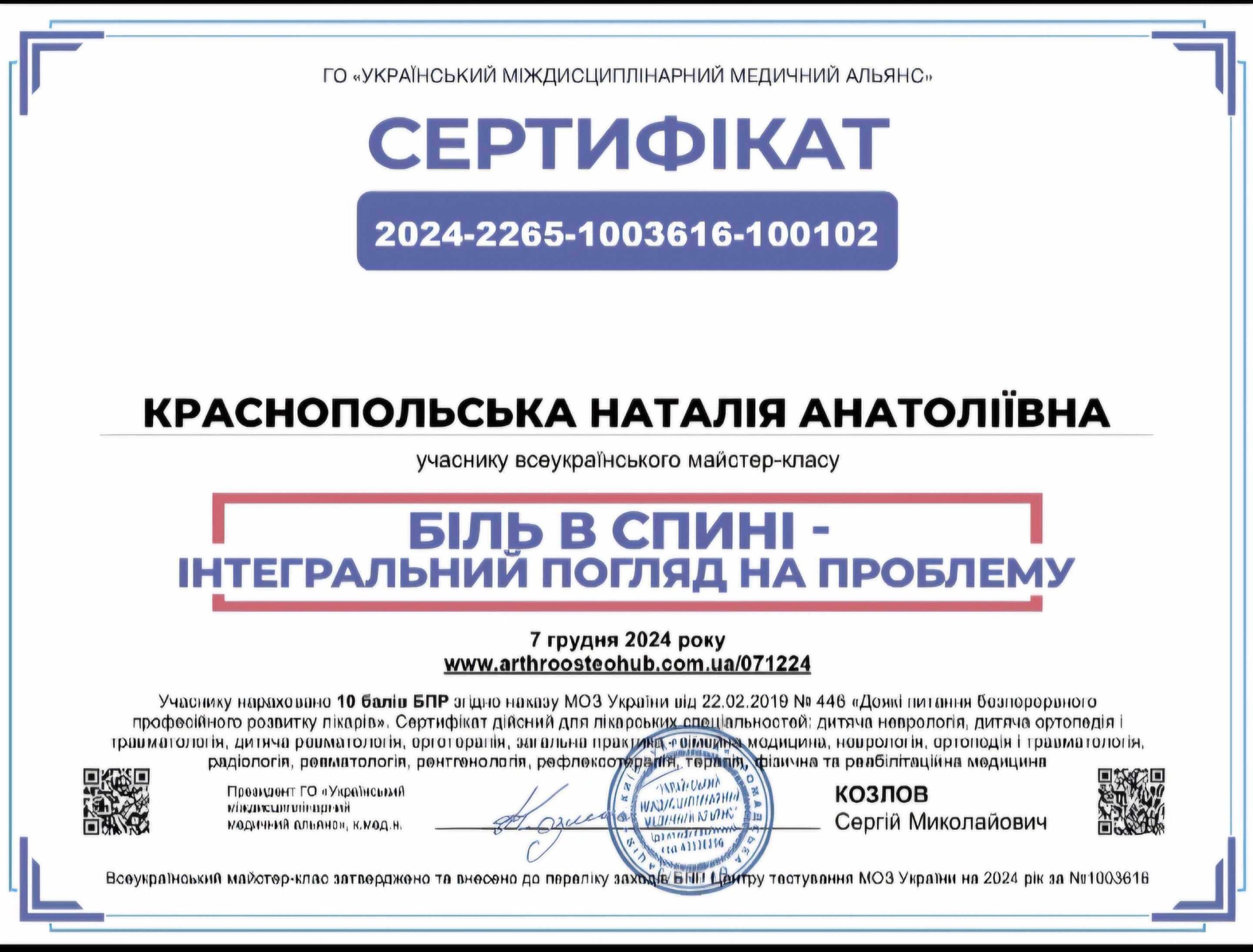 Софіє, дуже дякуємо за вам позитивний відгук про лікаря-невропатолога Наталію Краснопольську. Бажаємо вам мінцого здорво'я!