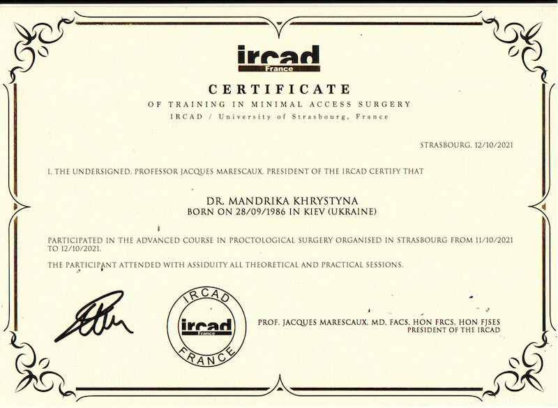 Олександре, дякуємо за теплий відгук про лікаря-проктолога, хірурга Мандріку Христину Михайлівну. Дякуємо за довіру і щиро бажаємо вам міцного здоров'я!