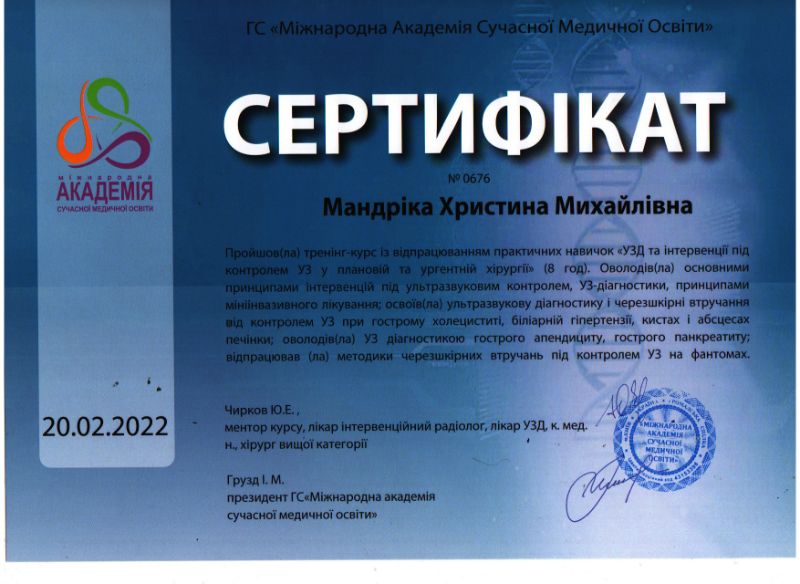 Мандріка Христина Михайлівна — лікар від Бога, уважна, доброзичлива, професіонал! Щиро їй дякую.
