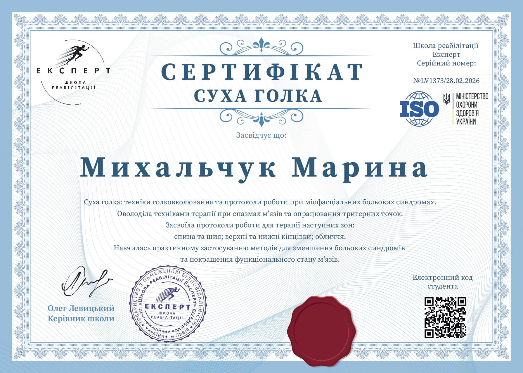 Хочу всім рекомендувати лікаря. Дякую за чудове обстеження, бо ви профі. Виявилось при спілкуванні, що лікар навчалась в центрі нейродіагностики у Пономаренко Юрія Володимировича (це дуже класний вчитель і він мені робив перші діагностики ЕНМГ), а також Марина Анатоліївна знає що таке метамерні ін'єкції, бо має досвід роботи ще в одному мед. закладі, в якому мене в прямому сенсі поставили на ноги! Моє обстеження було максимально комфортним.