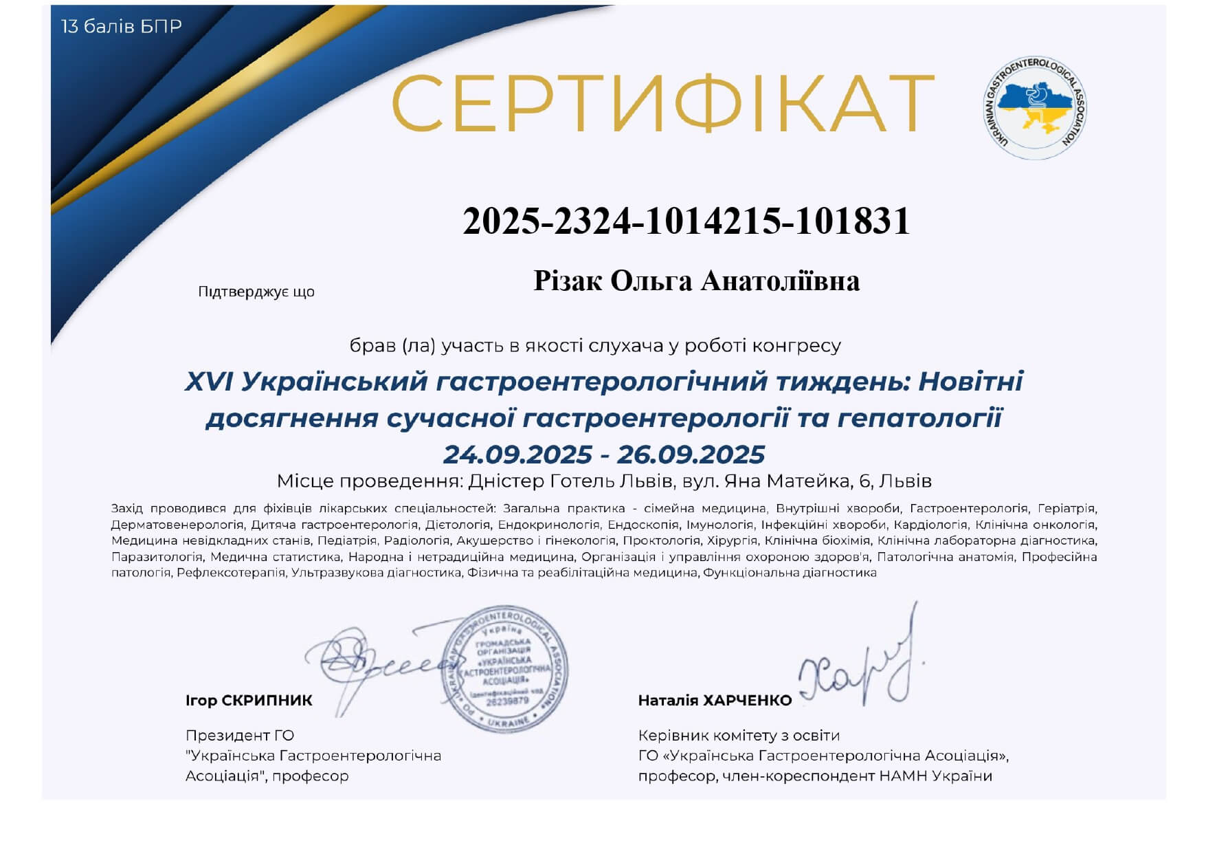 Дякуємо за ваш детальний відгук. Нам дуже приємно, що обстеження у лікаря ультразвукової діагностики Ольги Різак було для вас інформативним і комфортним. Бажаємо вам міцного здоров'я!