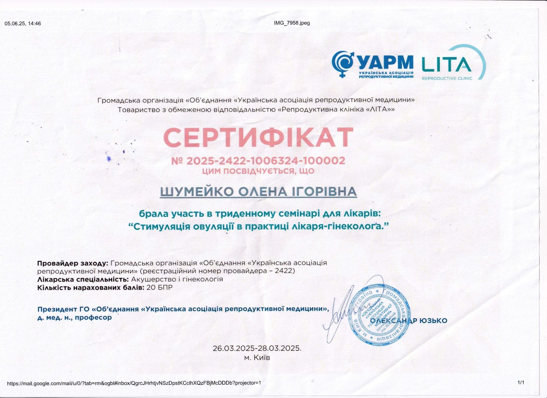 Відгук з сайту. Фахівець: Шумейко Олена Ігорівна. Напрями: Дорослим, Гінекологія. Філія на Оболоні