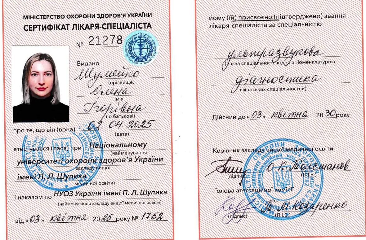 Дуже класна УЗД-лікарка Шумейко Олена Ігорівна. Професійна та дуже ввічлива.