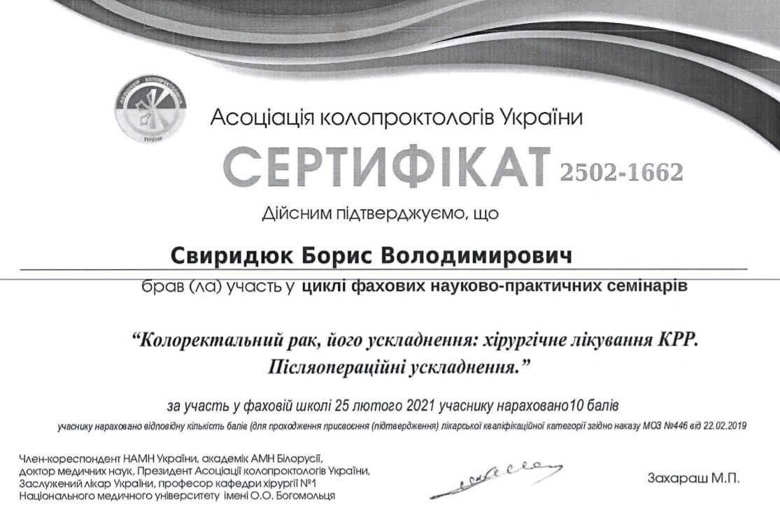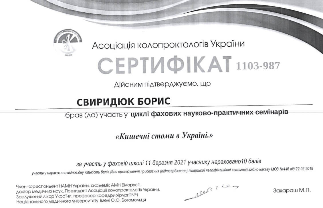 Відгук з анкети. Фахівець: Свиридюк Борис Володимирович (Хірургія). Філія на Оболоні