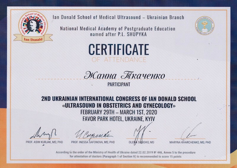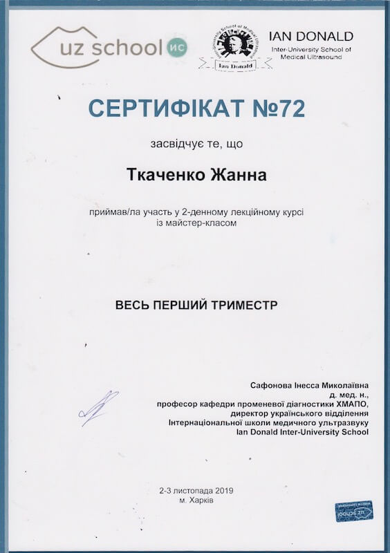 Відгук з сайту. Фахівець: Ткаченко Жанна Сергіївна (Ведення вагітності). Філія на Печерську