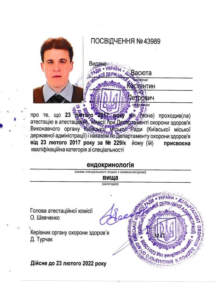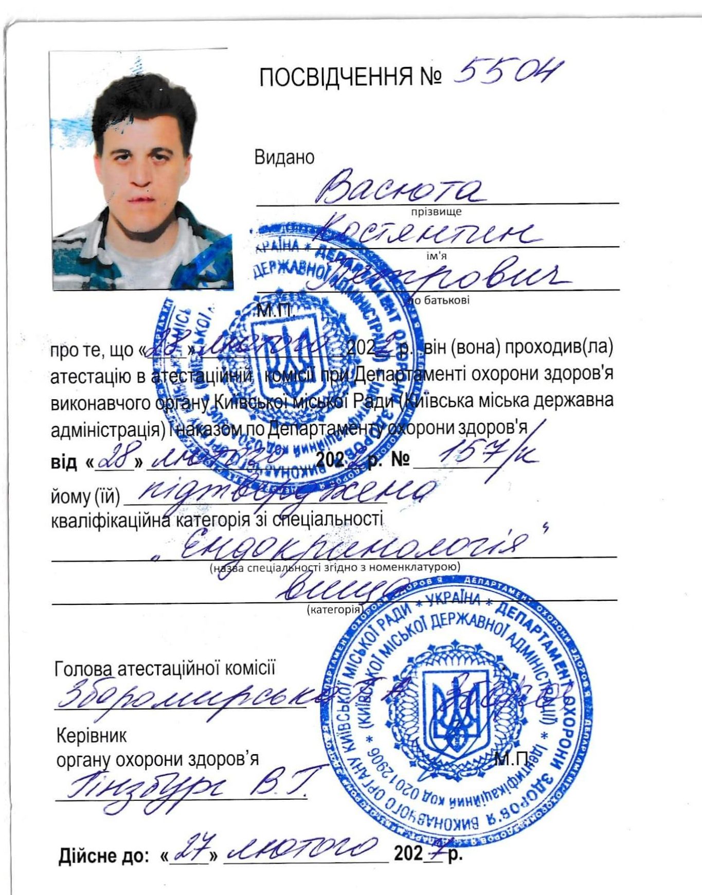 Дякуємо ендокринологу Костянтину Васюті за консультації. Професіоналізм, відкритість, чесність. 🤝 Рекомендуємо!