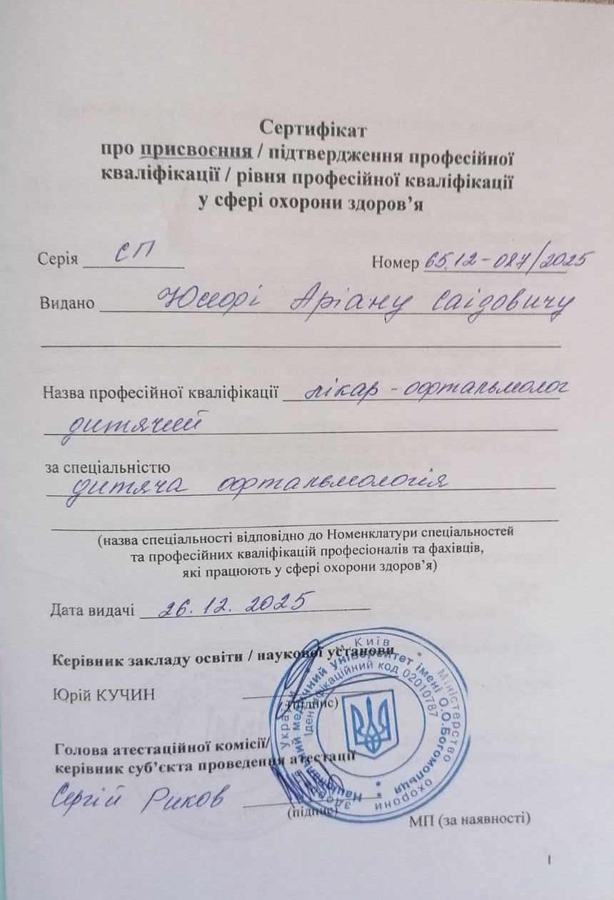 Була на прийомі у лікаря Юсефі А.С.. Вислухав, перевірив зір, дав рекомендації. Ввічлива людина і компетентний лікар. Дякую!