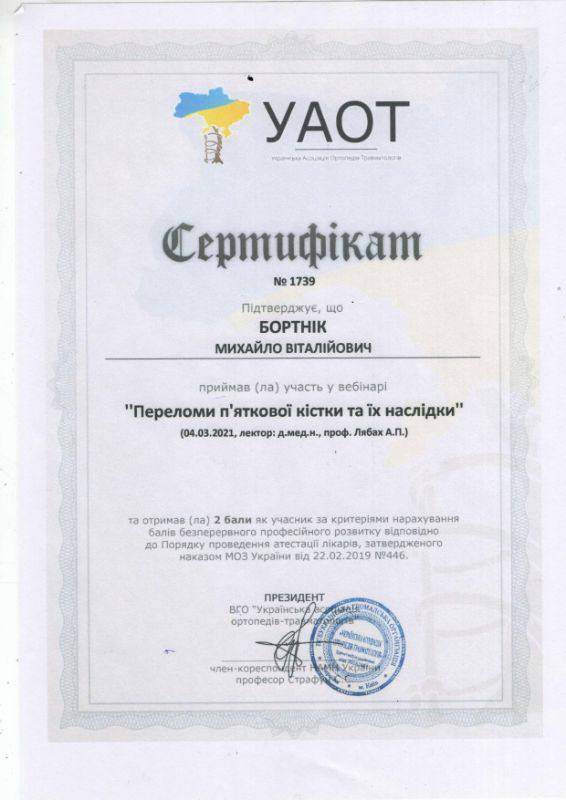 Наталіє, дякуємо за відгук про лікая-ортопеда-травматолога Бортника Михайла Віталійовича. Щиро бажаємо вам міцного здоров’я!
