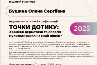 Ірино, дуже вдячні вам за такий теплий і надзвичайно змістовний відгук. Нам дуже приємно чути, що консультація у лікаря-дерматовенеролога Олени Бушиної була для вас результативною та комфортною. Раді, що лікар швидко визначила проблему, детально все пояснила та підібрала догляд, який дав помітний ефект уже з перших днів. Професіоналізм, уважність і людяність – це саме те, що ми цінуємо у наших спеціалістах, і чудово, що ви це відчули. Бажаємо вам міцного здоров'я!