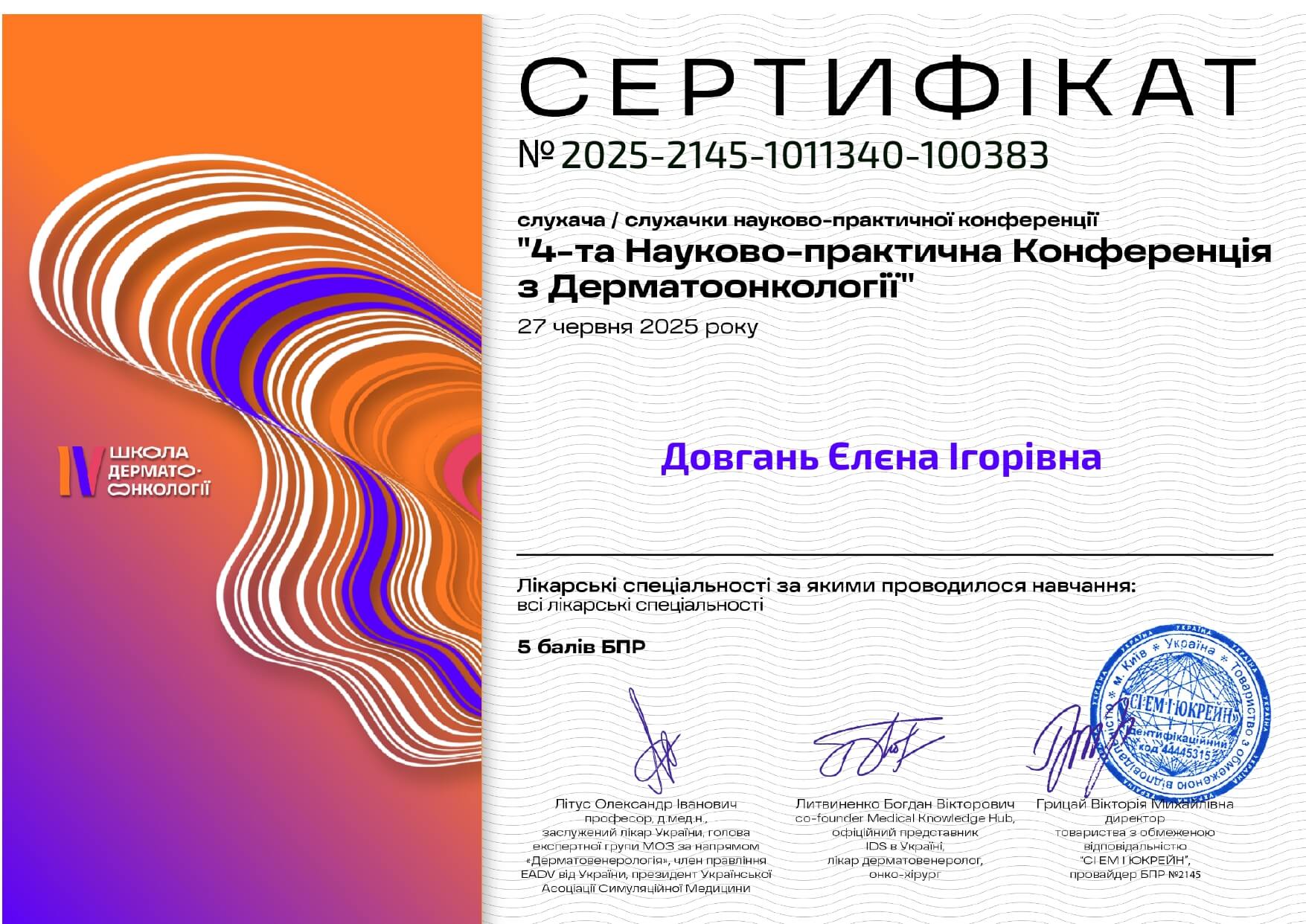 Катерино, щиро дякуємо за ваш позитивний відгук про лікаря-дерматовенеролога Єлєну Довгань. Раді, що лікар змогла допомогти у вирішенні вашої проблеми та надати зрозумілі й корисні пояснення. Бажаємо вам міцного здоров'я!