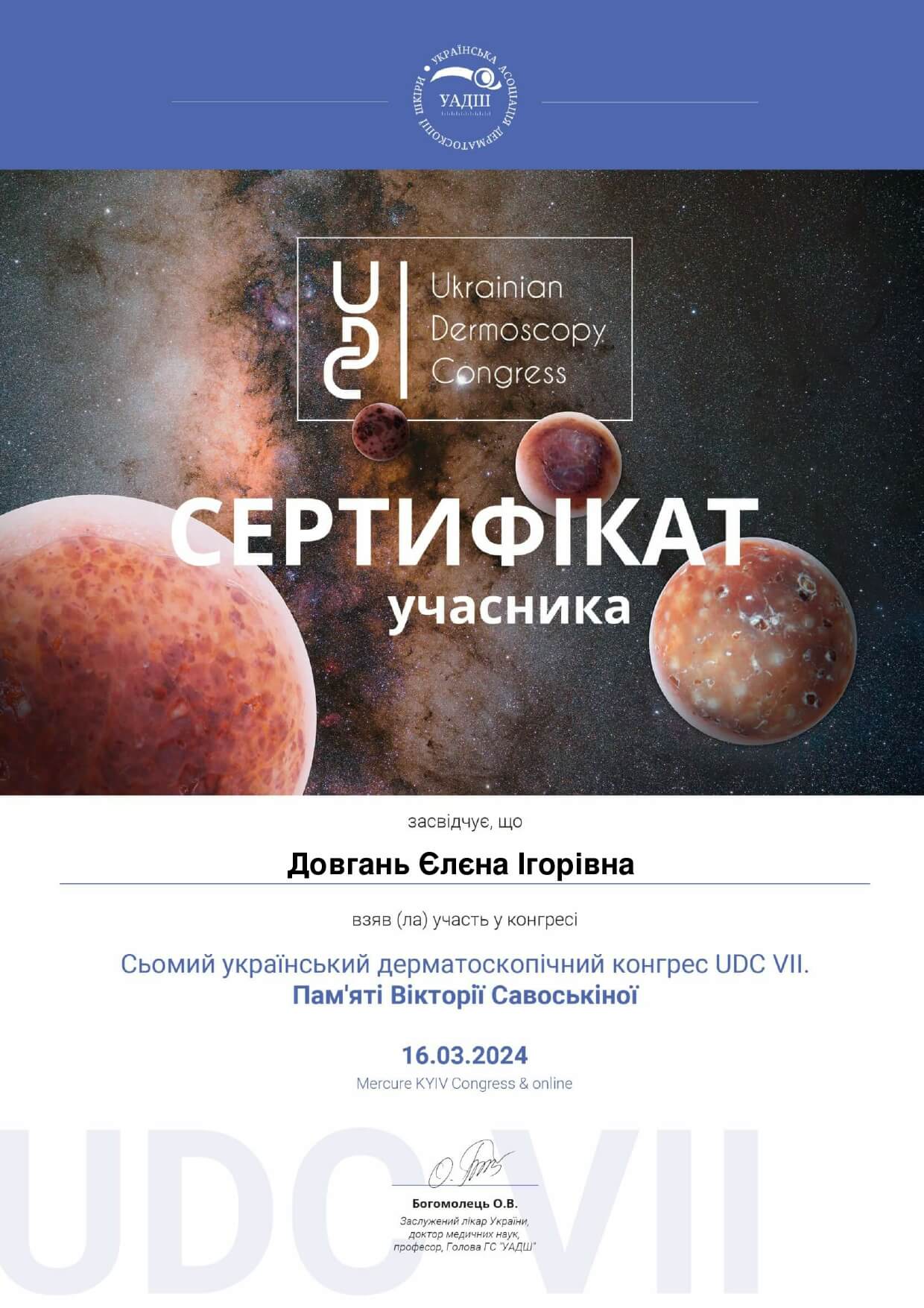 Отзыв с сайта. Специалист: Довгань Елена Игоревна (Дерматология / дерматоонкология). Филиал на Печерске