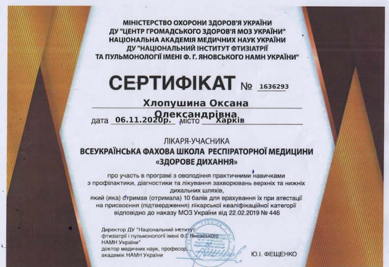 Миколо, дякуємо за відгук на порталі doc.ua про лікаря-отоларинголога Хлопушину Оксану Олександрівну. Щиро бажаємо вам міцного здоров’я!