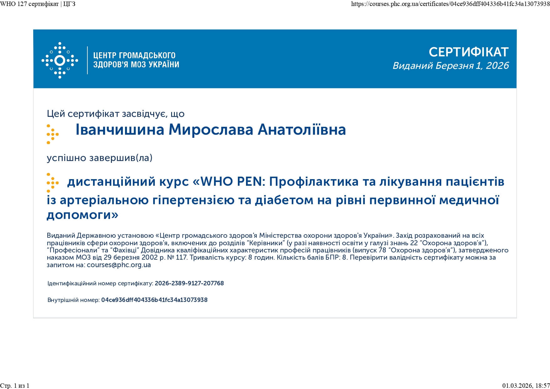 Владиславе, дуже дякуємо за такі слова про лікаря-терапевта Мирославу Іванчишину. Для нас важливо, щоб пацієнти відчували не лише професіоналізм лікаря, а й щире, уважне ставлення. Бажаємо вам міцного здоров'я!