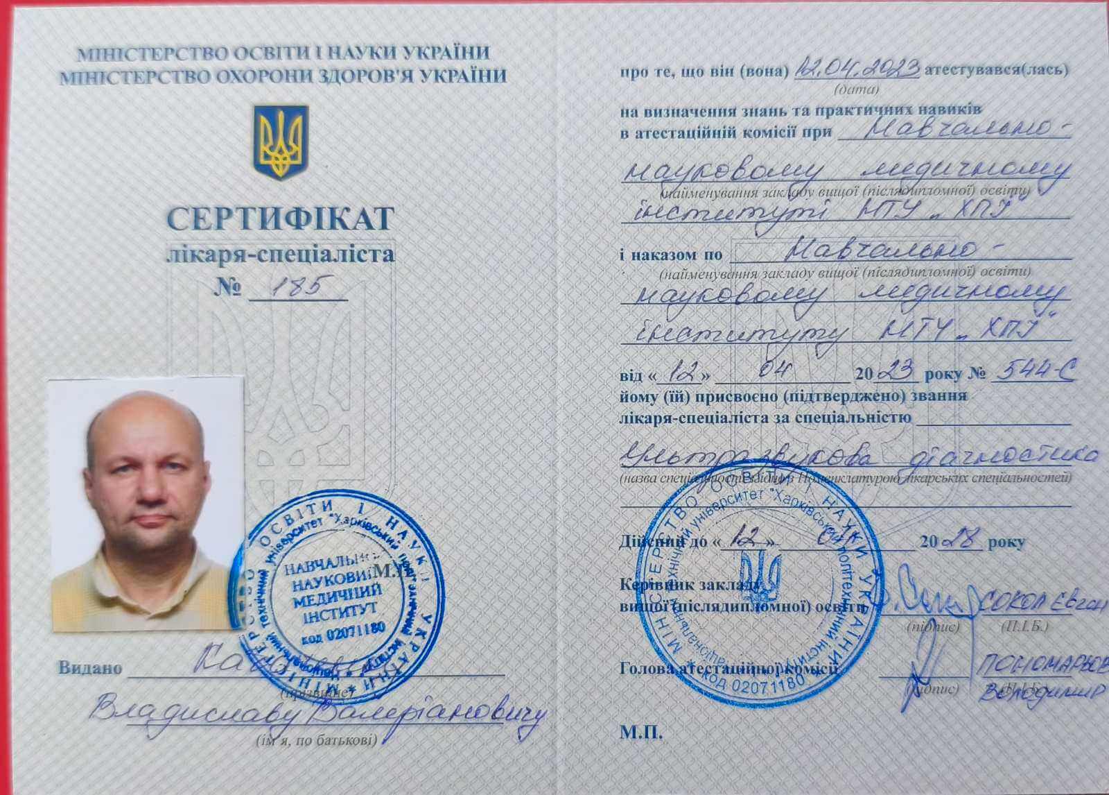 Отзыв с сайта. Специалист: Кабаченко Владислав Валерианович. Направления: Допплерография сосудов, Сосудистая хирургия. Филиал на Оболони