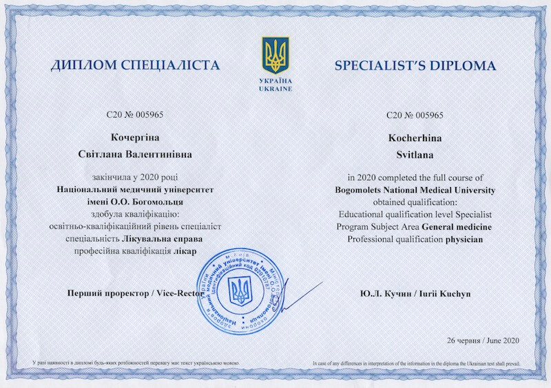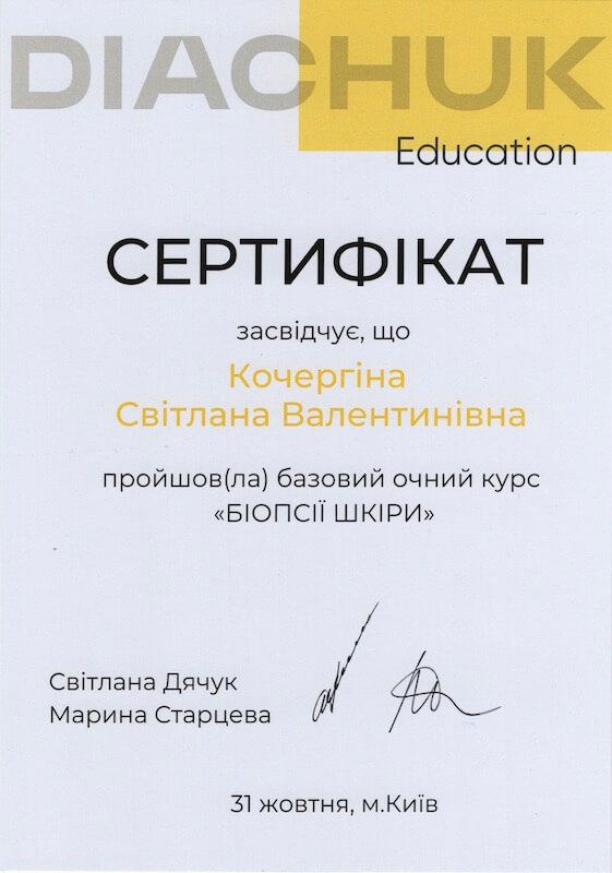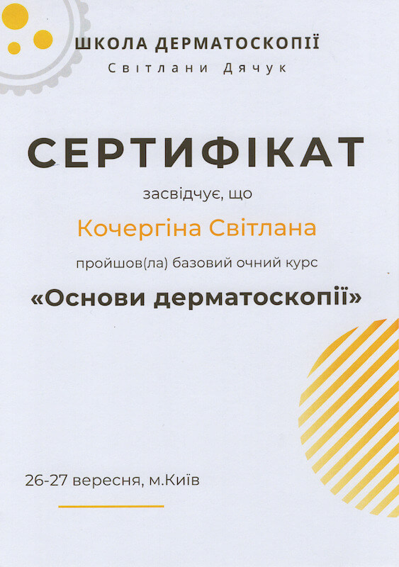 Анастасіє, дякуємо за відігук про лікаря-дерматолога Кочергіну Світлану Валентинівну. Щиро бажаємо вам міцного здоров’я!