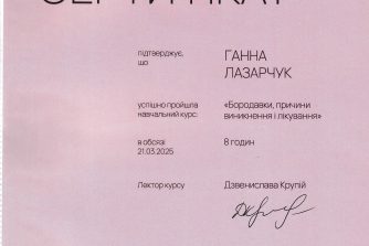 Олено, щиро дякуємо вам за такий теплий відгук про подолога Анну Лазарчук. Нам дуже приємно, що ви відзначили її професіоналізм і людяність. Бажаємо вам міцного здоров'я!