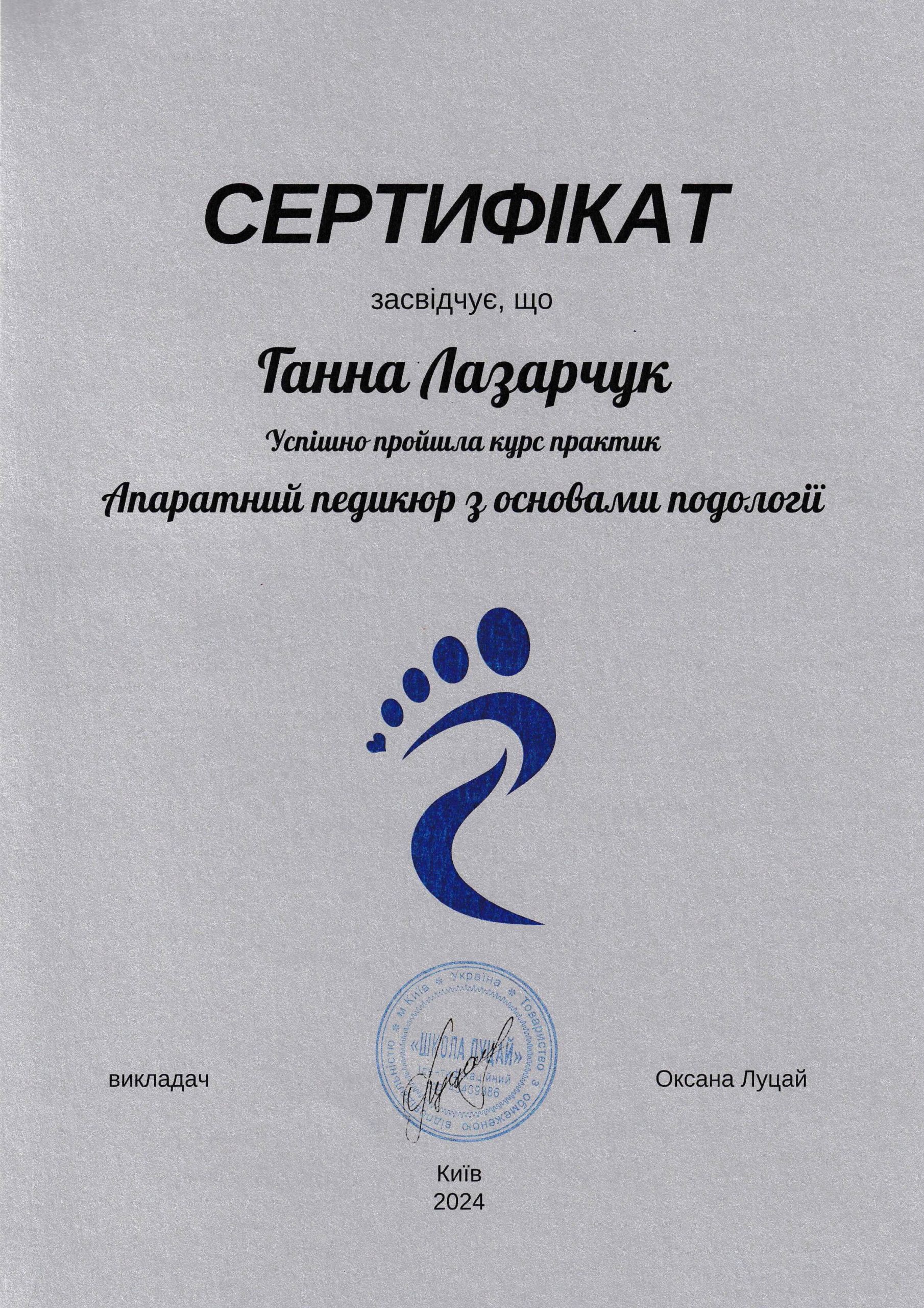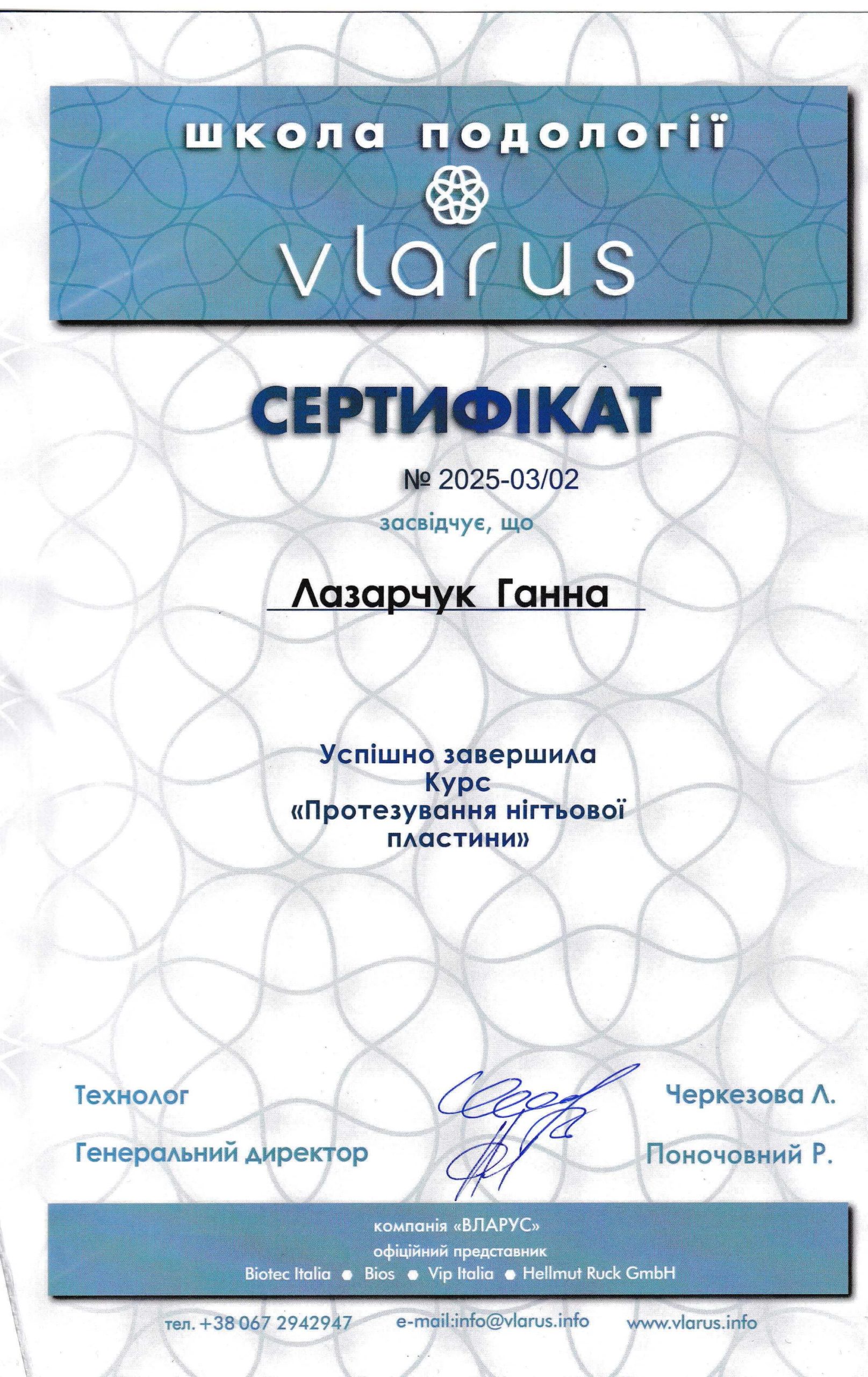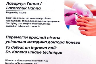 Отзыв с сайта. Специалист: Лазарчук Анна Александровна (Подология). Филиал на Оболони