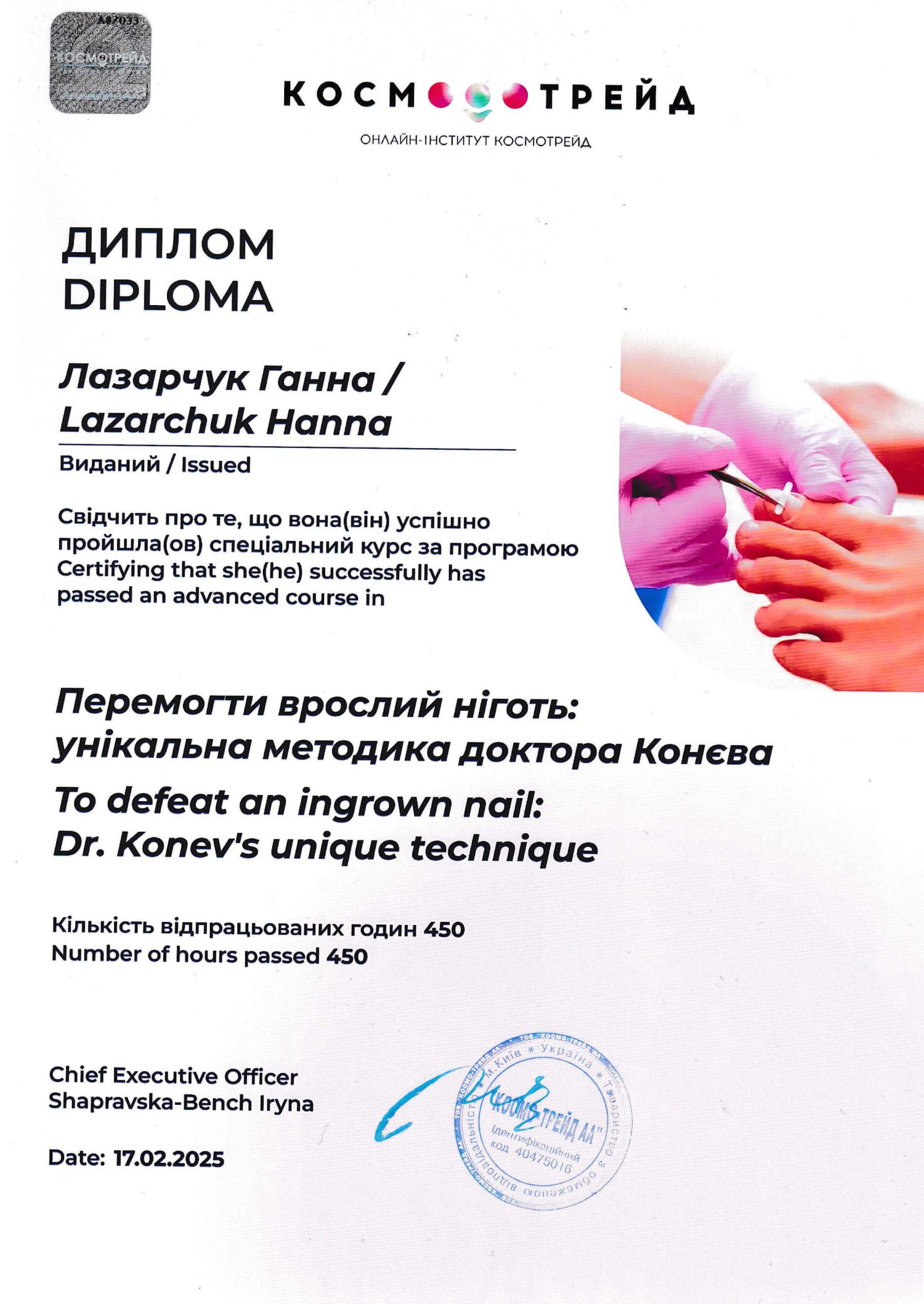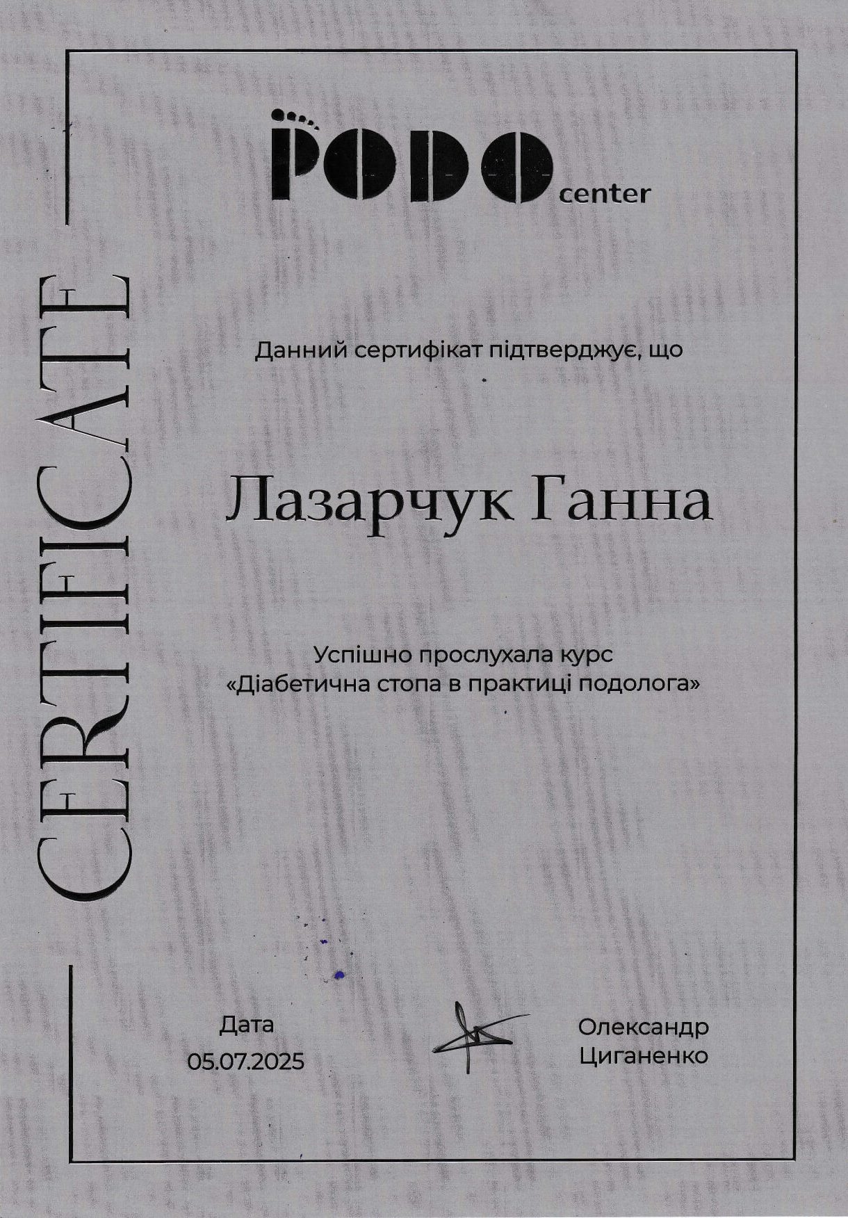 Подолог Лазарчук Анна – суперпрофессионал и очень приятный человек.