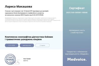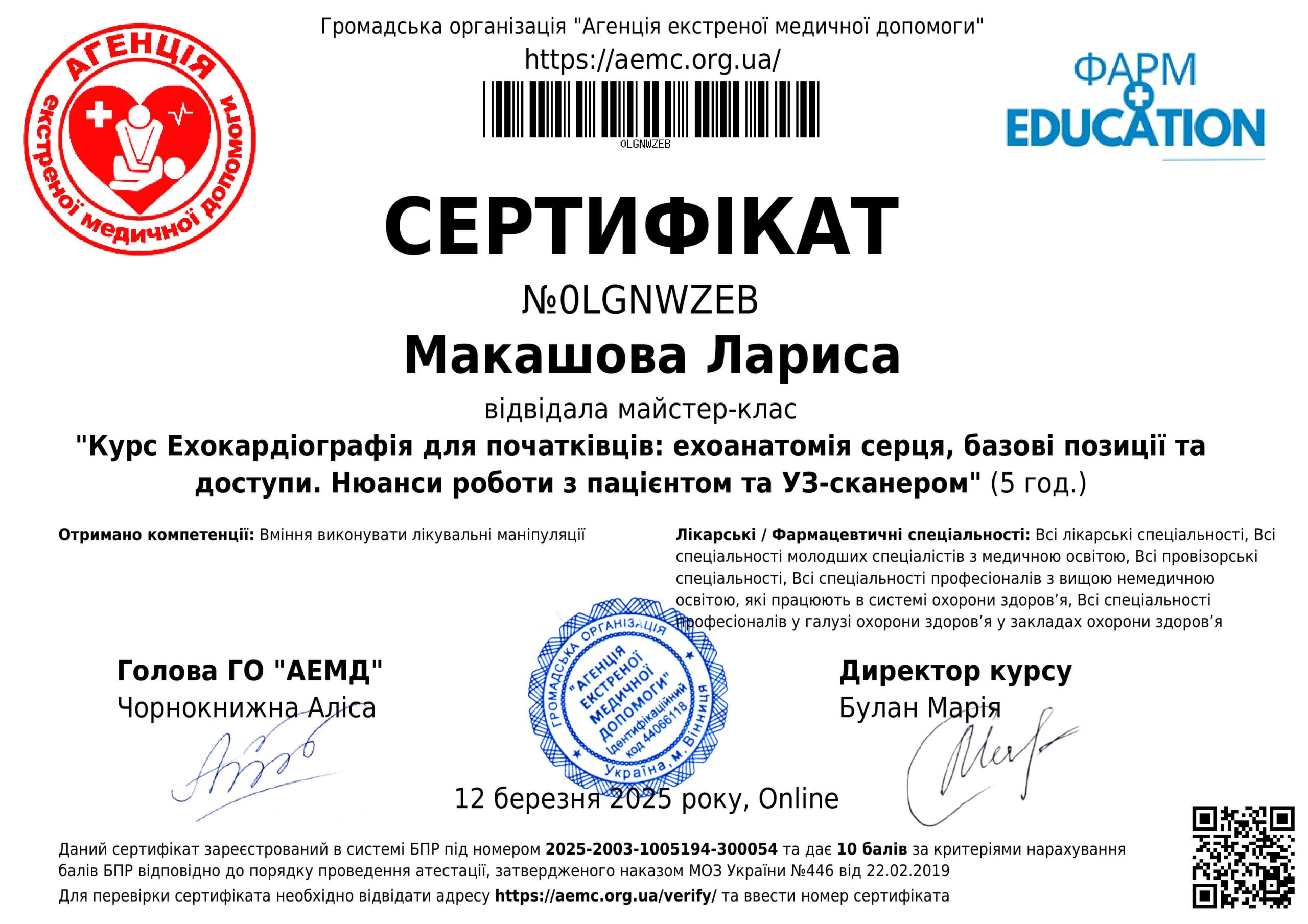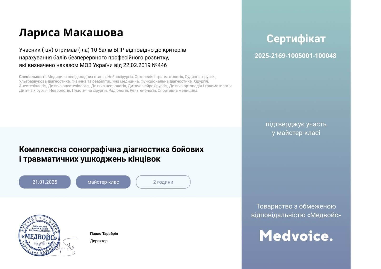 Олександро, дуже вдячні за відгук та раді чути, що ви залишилися задоволені консультацією та професіоналізмом Лариси Макашової. Бажаємо вам міцного здоров'я!