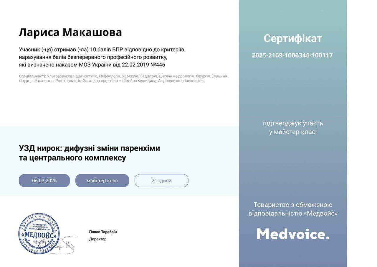 Отзыв с сайта. Специалист: Макашова Лариса Ивановна. Направления: Ультразвуковая диагностика (УЗД) детская, Ультразвуковая диагностика (УЗД). Филиал на Оболони