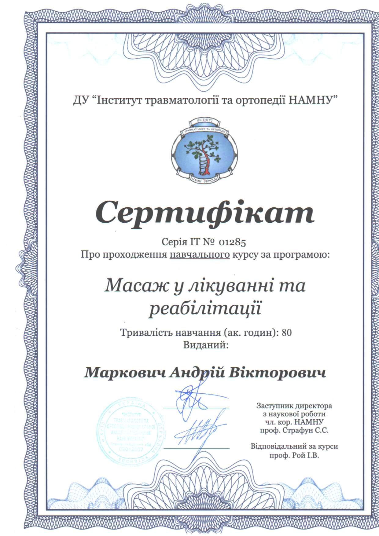 Отзыв с сайта. Специалист: Маркович Андрей Викторович. Направления: Массаж детям, Массаж. Филиал на Печерске
