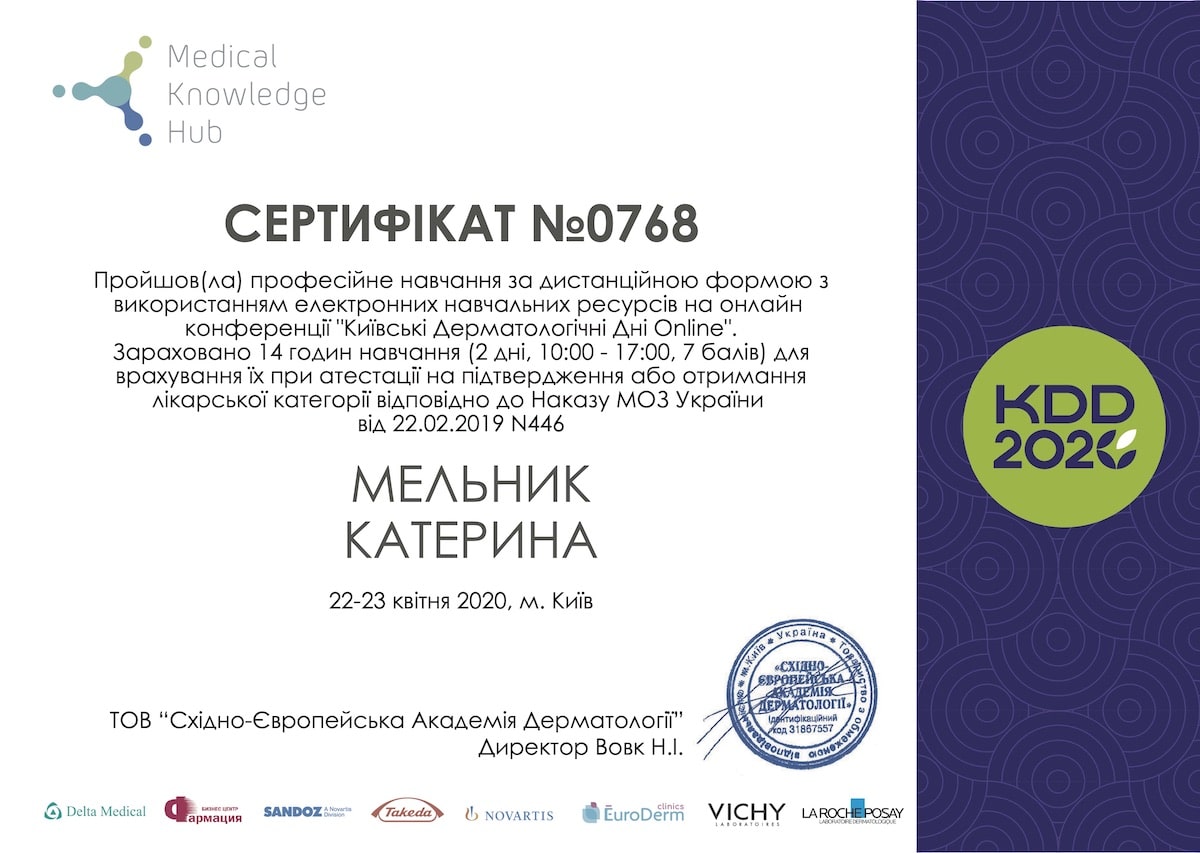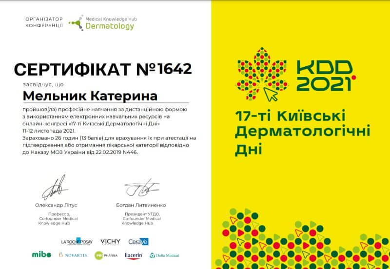 Ірино, дякуємо за відгук про лікаря-дерматолога Мельник Катерину Олександрівну. Щиро бажаємо вам міцного здоров’я!