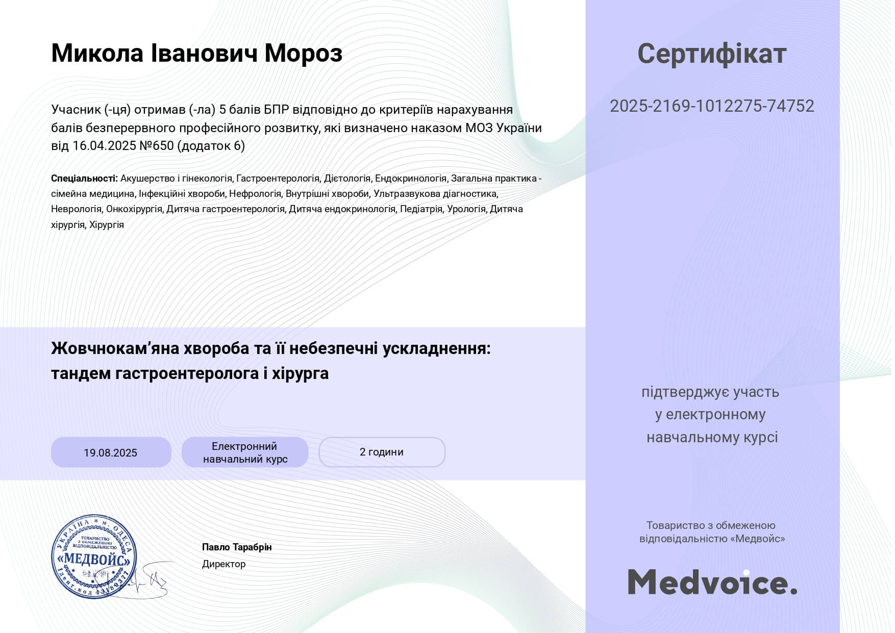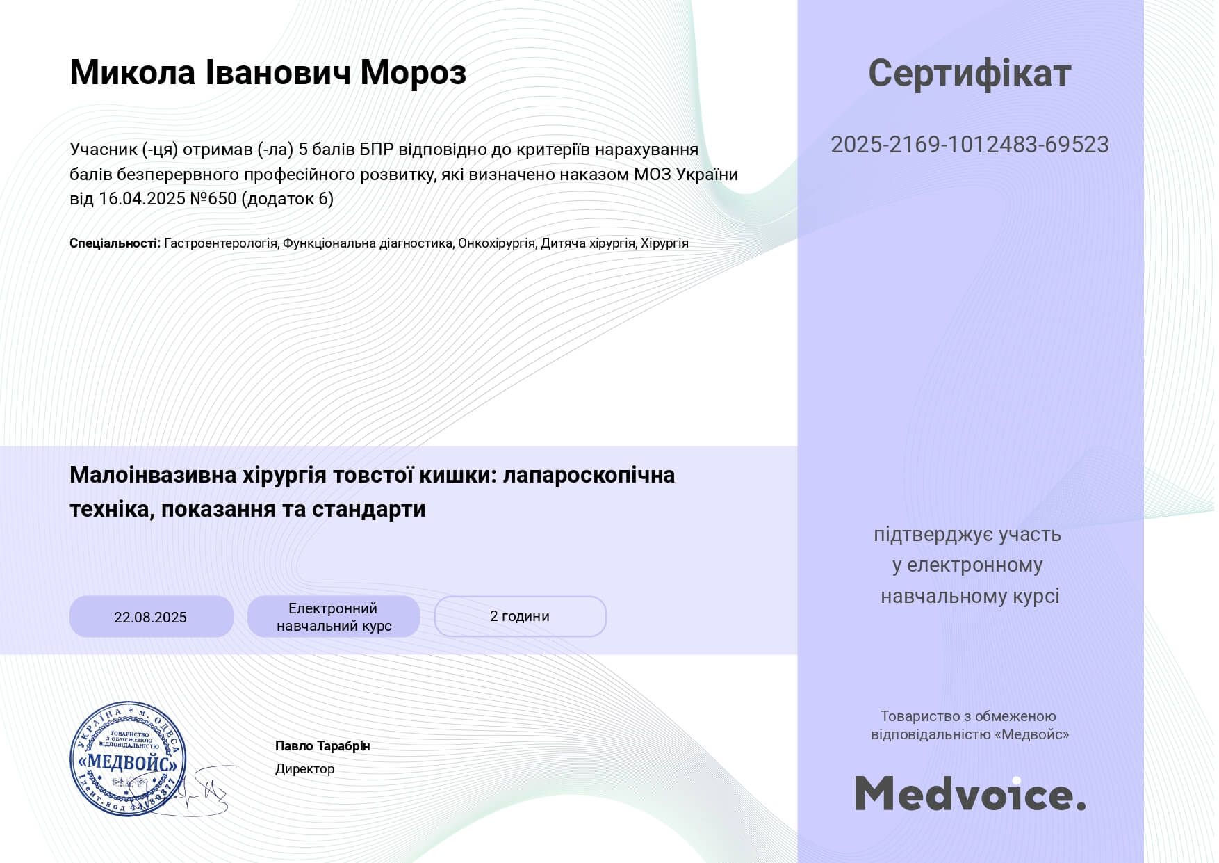 Андрію, дякуємо за ваш відгук про лікаря-хірурга Миколу Мороза. Бажаємо вам міцного здоров'я!