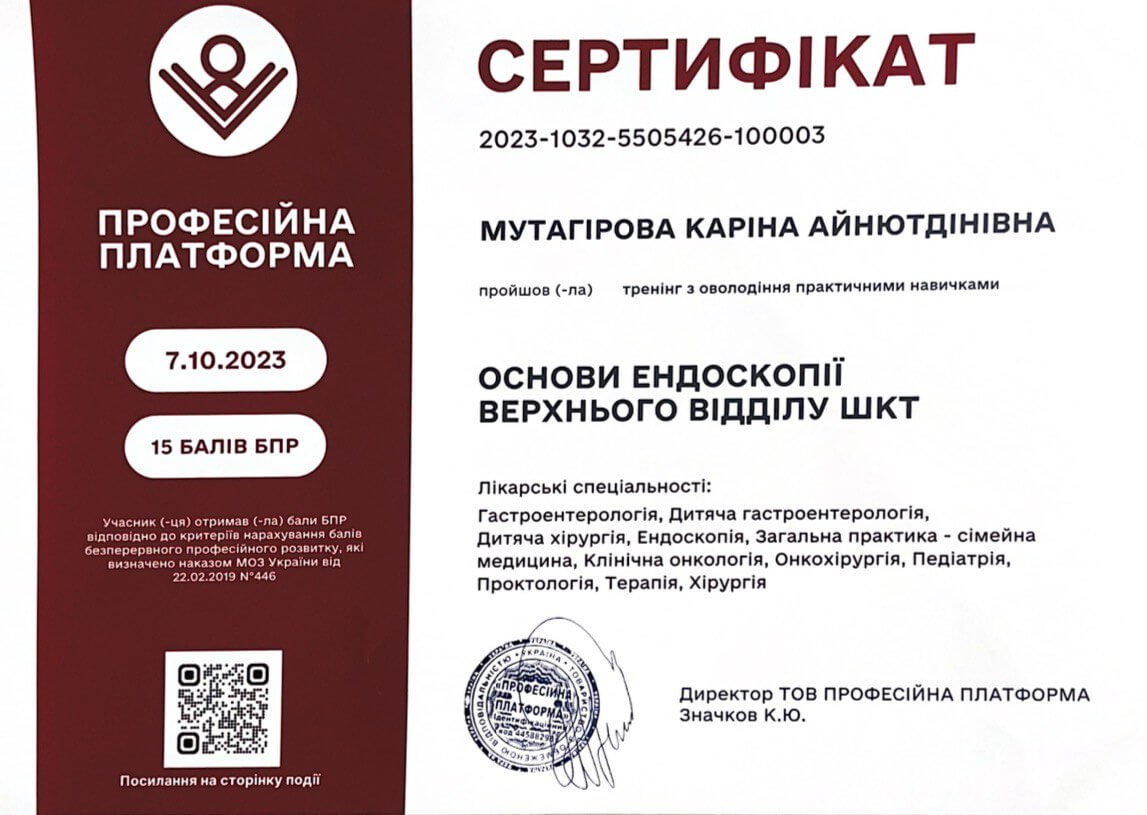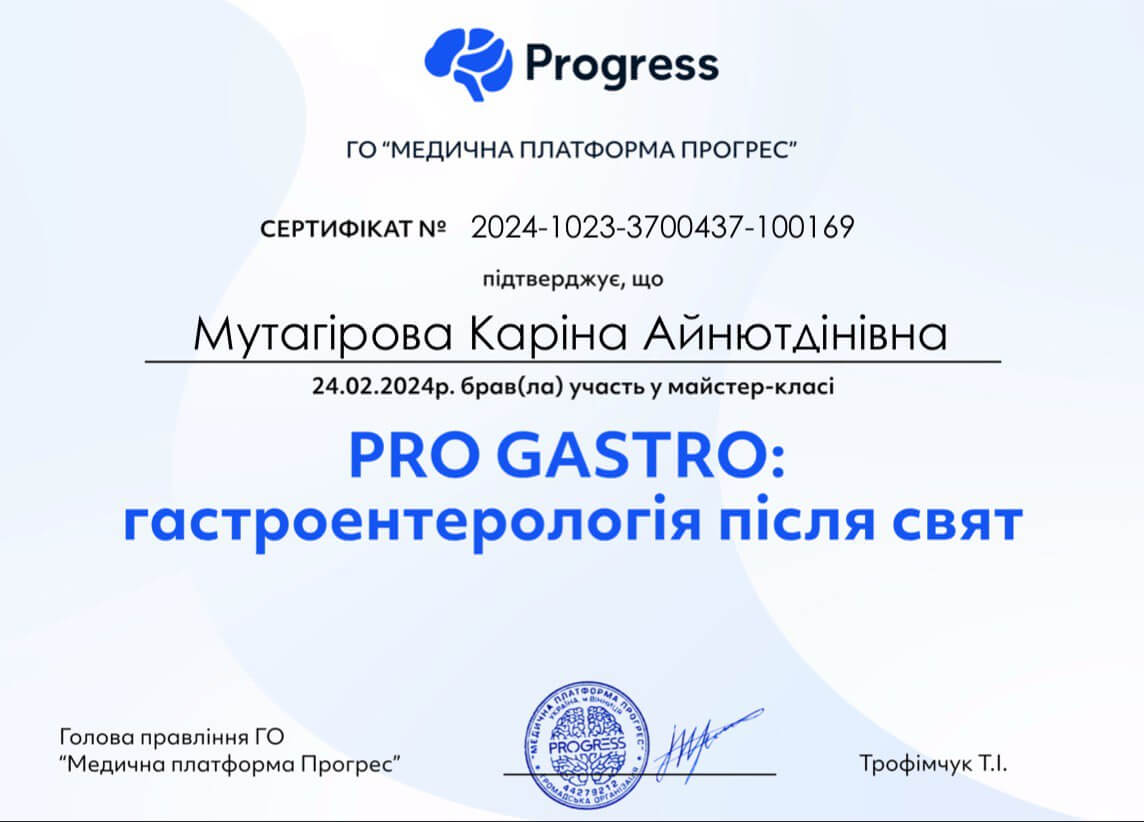 Отзыв с сайта. Специалист: Мутагирова Карина Айнютдинивна (Терапия). Филиал на Печерске