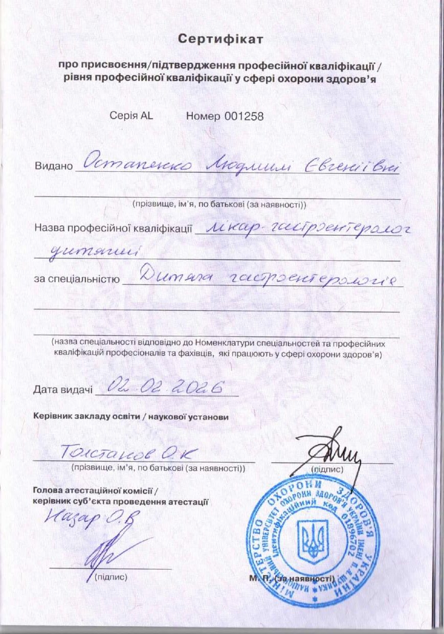 Наталіє, дуже дякуємо за довіру до нашої клініки. Нам приємно, що ви відзначили професійність і людяність лікаря-педіатра Людмили Остапенко. Бажаємо вам міцного здоров'я!