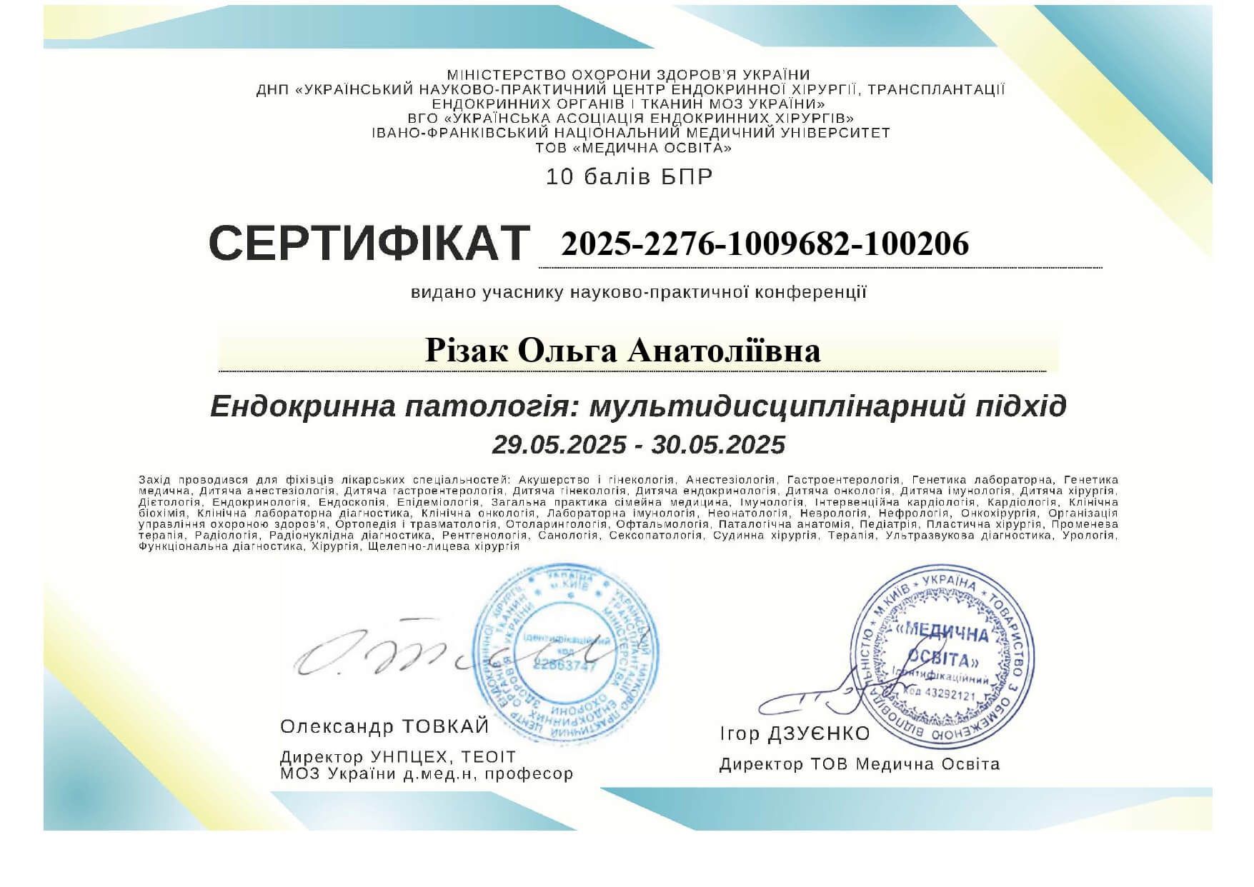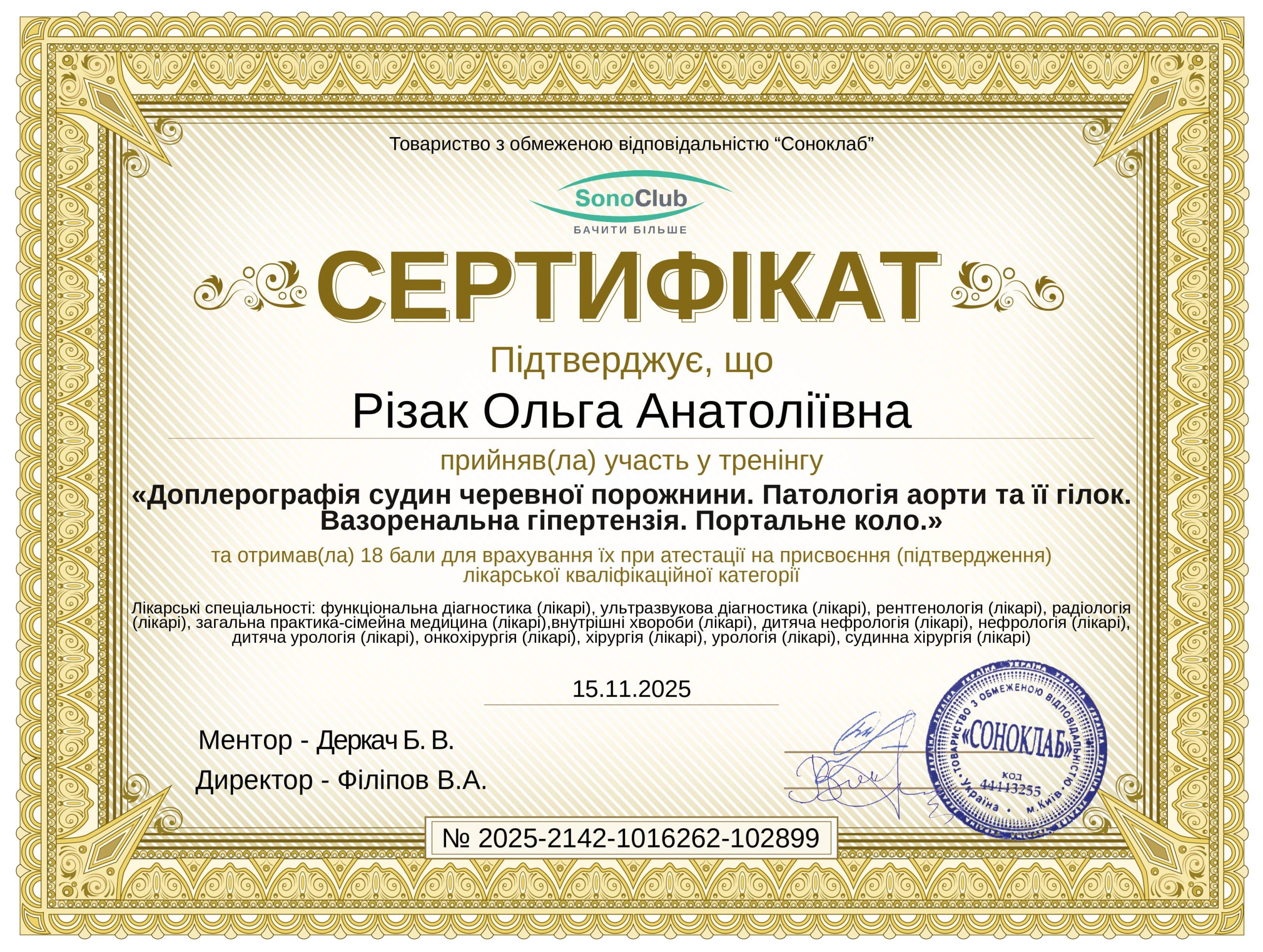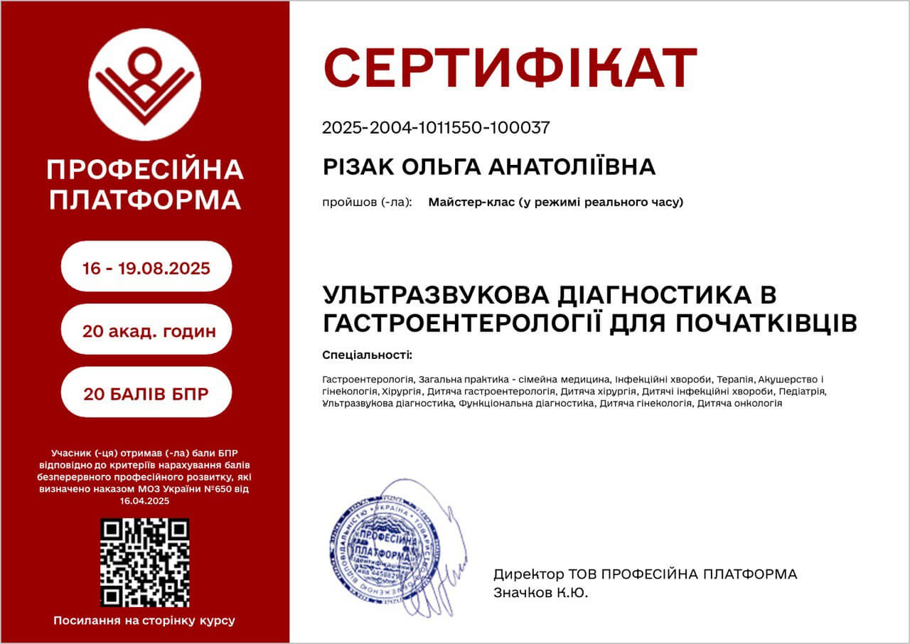 Дякуємо за ваш детальний відгук. Нам дуже приємно, що обстеження у лікаря ультразвукової діагностики Ольги Різак було для вас інформативним і комфортним. Бажаємо вам міцного здоров'я!