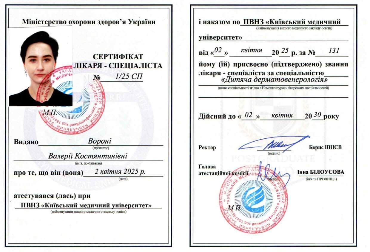 Діано, дякуємо за ваш відгук про лікаря-дерматовенеролога Валерію Ворону. Бажаємо вам міцного здоров'я!